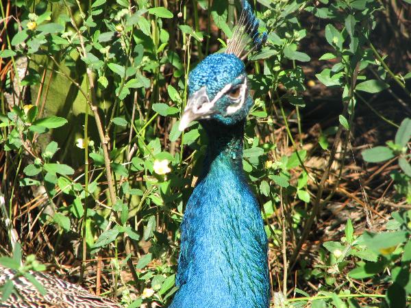 us has some peacocks. Four of them, two male Peacocks & two female Pea hens.