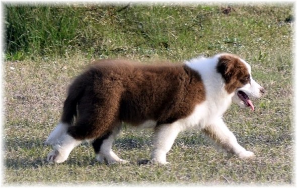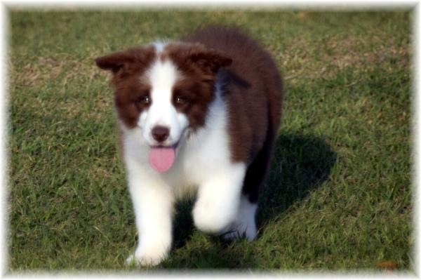 | Wilsong Border Collie Kennel is proud to announce the first litter from our Chocolate Girl, Wilsong Double Chocolate Surprise- Kelsey. These pups were sired by our Austrian Import, Glentress Captain at OR Trail. Two beautiful Chocolate Boys have arrived here at Wilsong. |