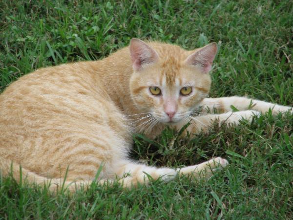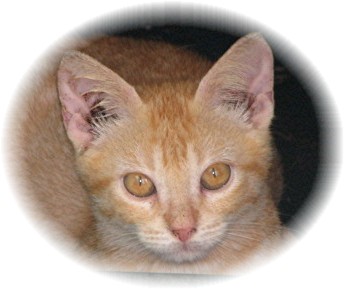 Meet Otis He is a stowaway that just suddenly appeared out of nowhere. He is a feral cat that lives in the dog kennels. He stays with my other cats. And oddly enough they all get along with him. We went out of town for a few days and Otis moved in. He is a young kitten about 10 - 12 weeks old. A yellow or light red tabby with beautiful gold eyes. Slowly I am making friends with him. |