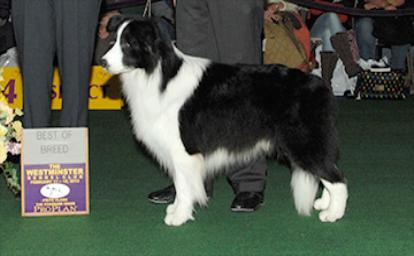 | Grand CH Borderfame Signature was the Sire of our Braeyden & Isabella. Sadly, just 2 weeks after his winning the Breed at Westminster for the 4th time, Airly passed away. We send our deepest sympathy to his owners and breeder. Airly contributed a lot to the Border Collie breed. He was a beautiful dog with a lovely personality and his movement in the show ring was breathe taking, He will be missed. RIP Airly. |