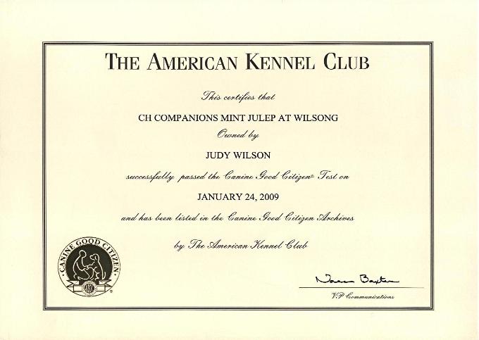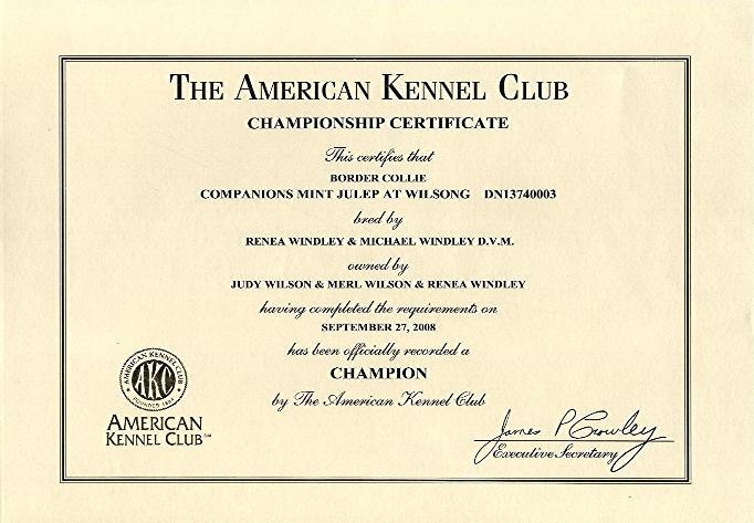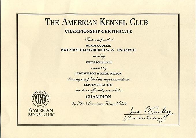 | We started showing, training & raising purebred dogs in 1969.  Here are some of the certificates of our dogs over the years. Due to a couple of storms & our moving, a few of the earlier ones have been misplaced.Obedience, Conformation & Herding are the venues we are involved in currently. |