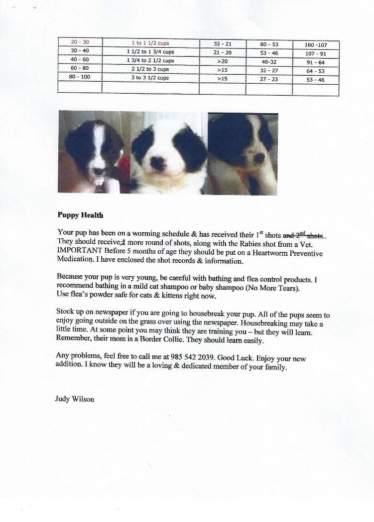 WILSONG BORDER COLLIES WWW.WILSONGBORDERCOLLIES.COM ROBERT, LOUISIANA USA PHONE 985 542 2039 EMAIL |