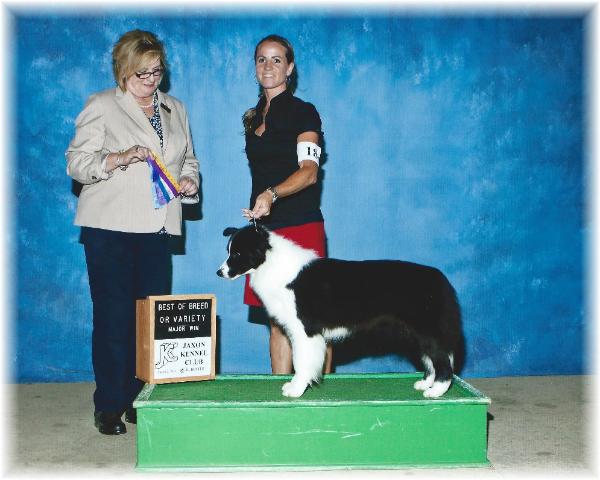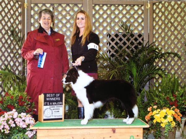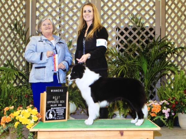 Bloomington Indiana Kennel Club April 19, 2013 Izzy winning her first major Winners and BOS under Judge Peggy J. Hauck . |
