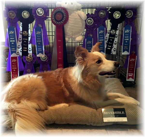 Glitter, Wilsong Glitter In The Air At Whistle-Stop taking time to pose here at a dog show. Glitter lives in Oklahoma. |